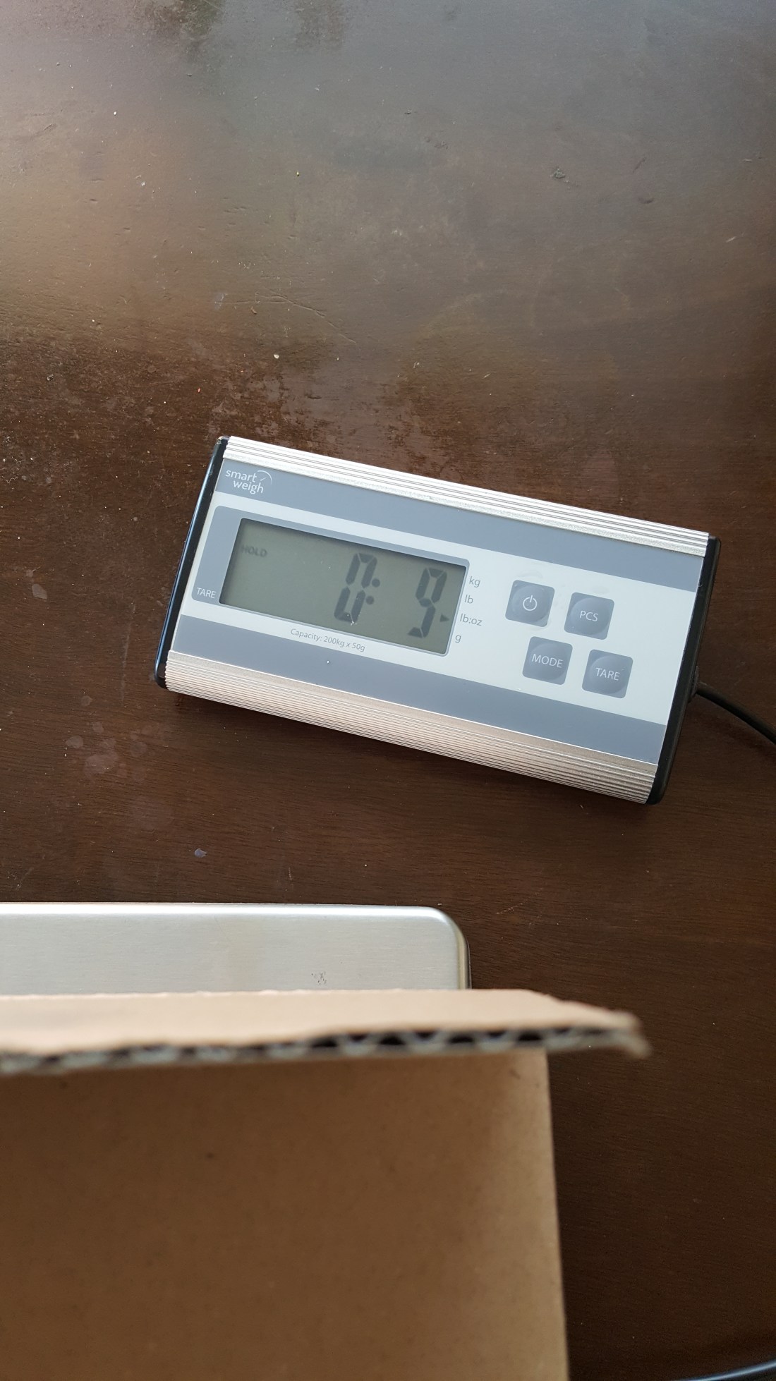 One hat in a poly bag with my thank you note. Next, it’s time to weight the box.